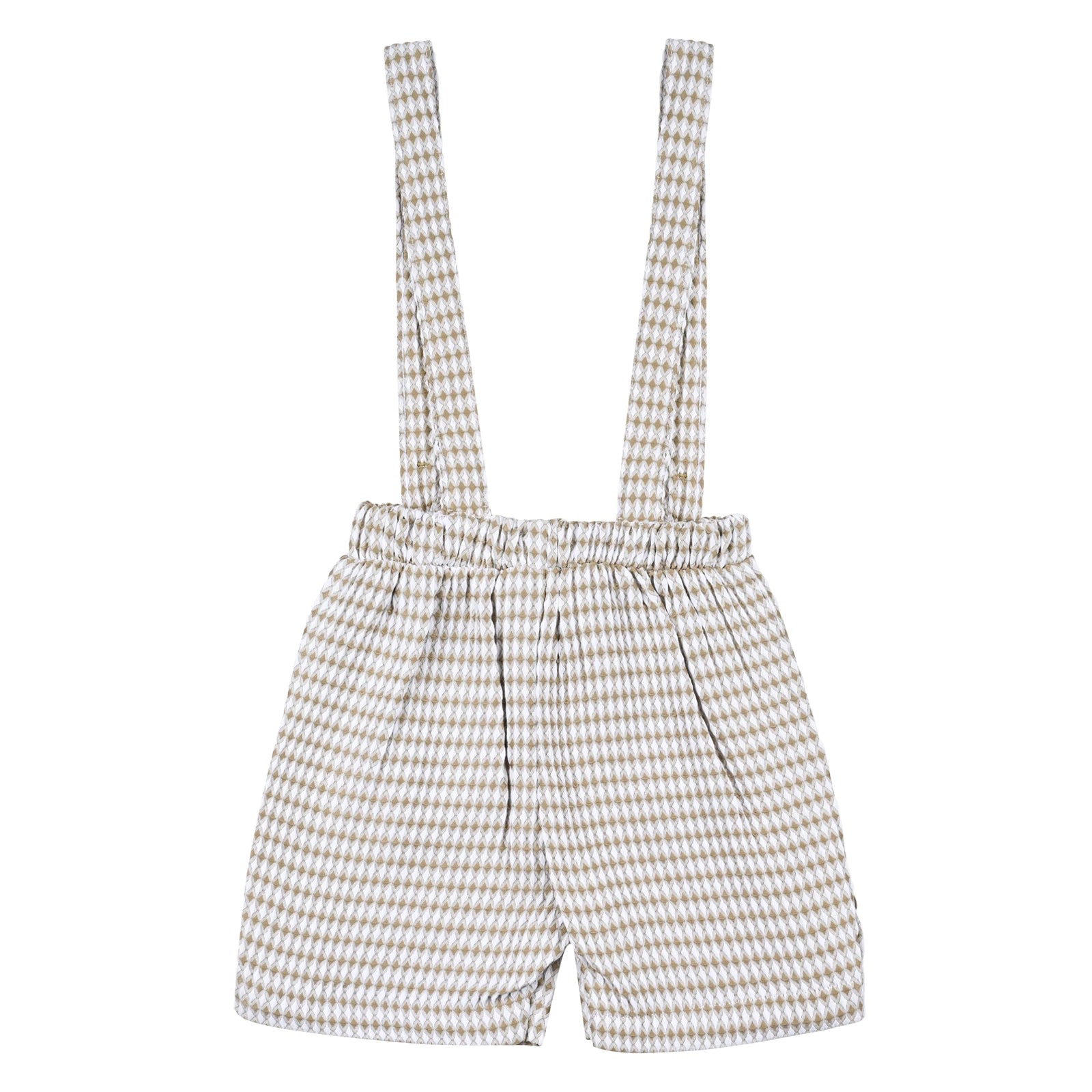 Add a touch of vintage charm to your baby boy's wardrobe with the JAYDEN suspender shorts set from Joy 'n' Me. Perfect for babies aged 3 to 18 months, this adorable 2-piece outfit features a soft cotton t-shirt paired with checked suspender shorts.