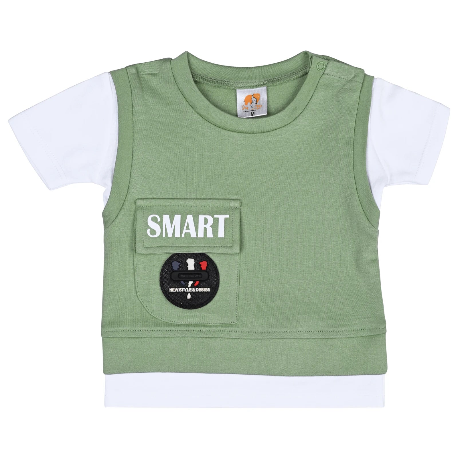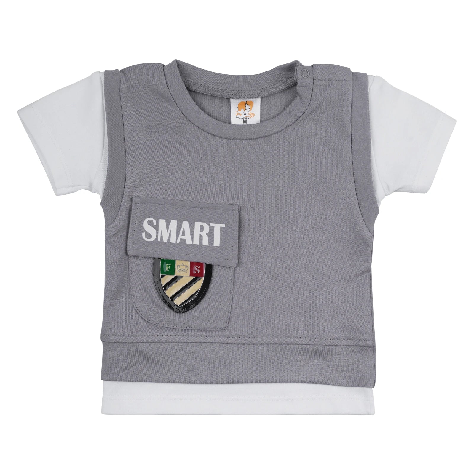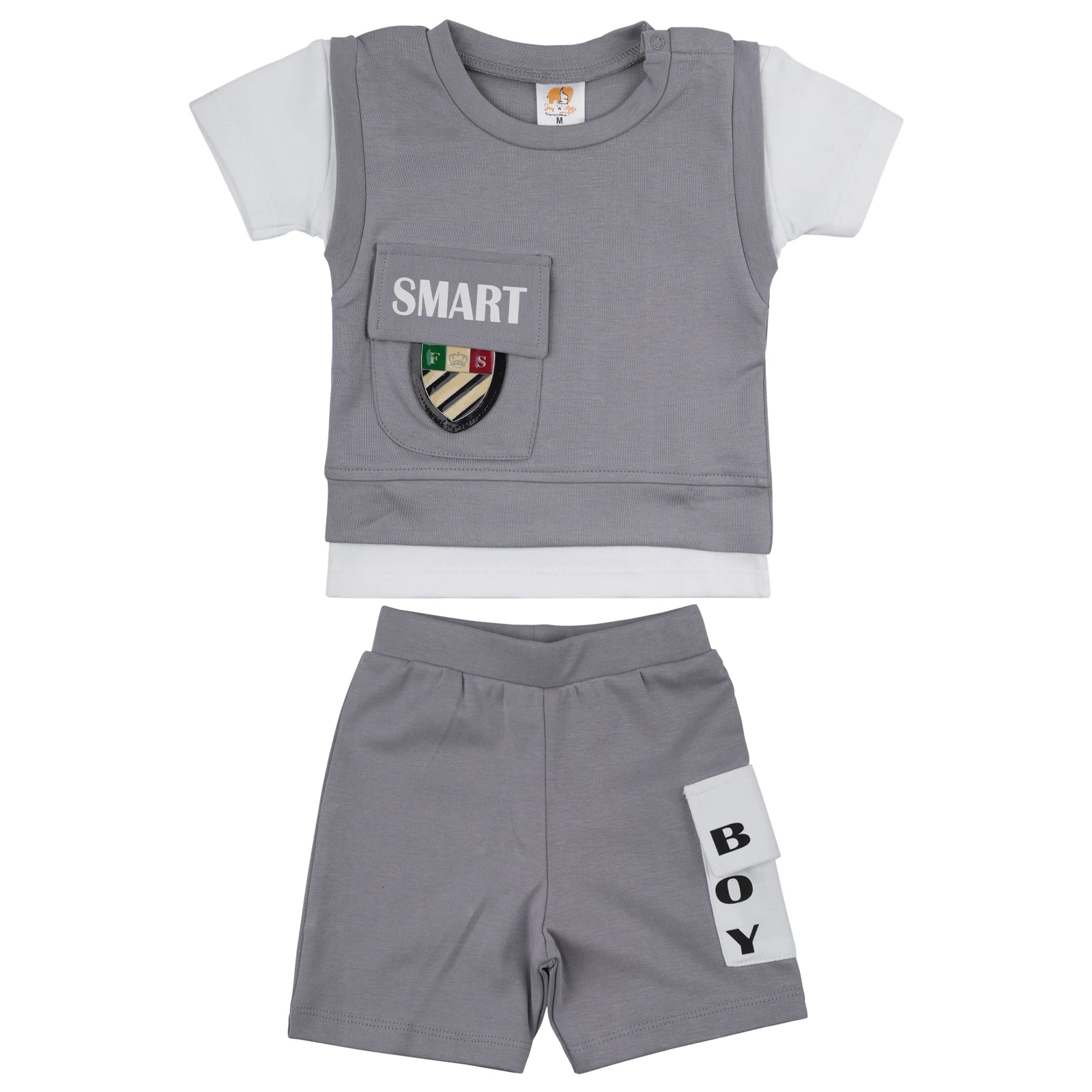 Dress your little champ in style with our Veer Baby Boy Co-ord Set. Designed with a trendy layered look, this outfit features a soft round-neck t-shirt with an attached sleeveless top and matching shorts. The bold “SMART” and “BOY” detailing adds a cool, playful touch, making it a perfect everyday wear outfit.